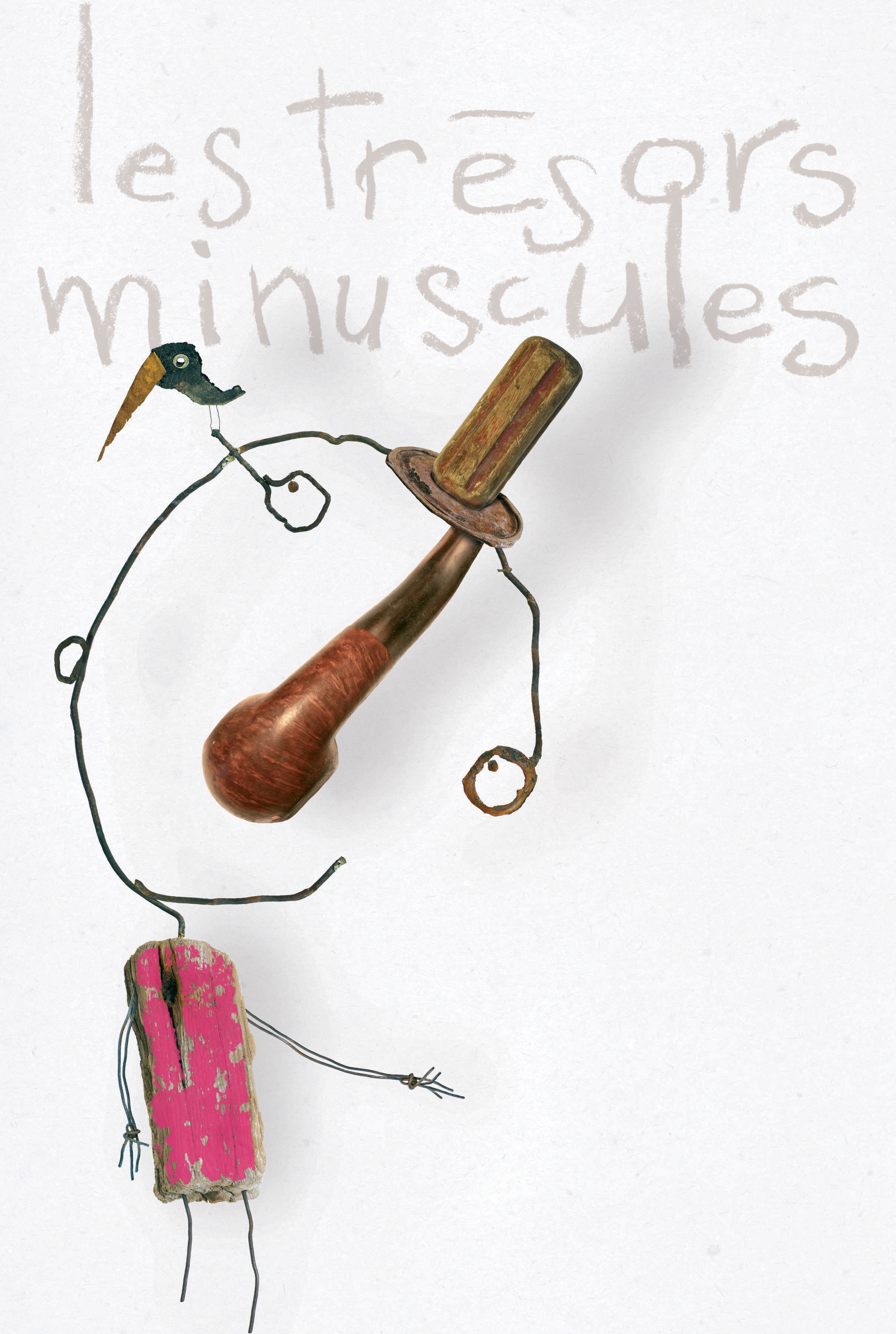 Ses illustrations sont des créations éphémères réalisées avec des objets de récupération, cartons, papiers découpés, fils de fer, boulons, vieux cuirs…